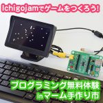 ブースでは、こどもパソコンIchigoJam(イチゴジャム)で作ったゲームで遊んだり、簡単なプログラムを書く体験ができます。