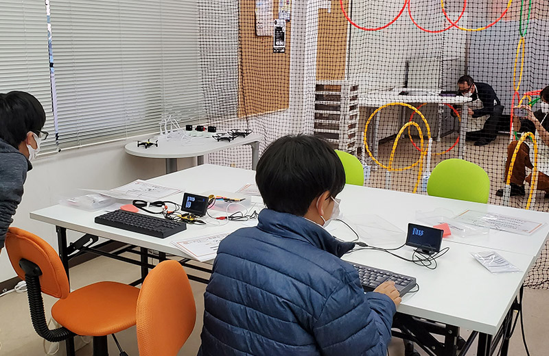 ミニパソコンIchigoJam(イチゴジャム)でプログラミングを行い、ドローンを飛ばします。