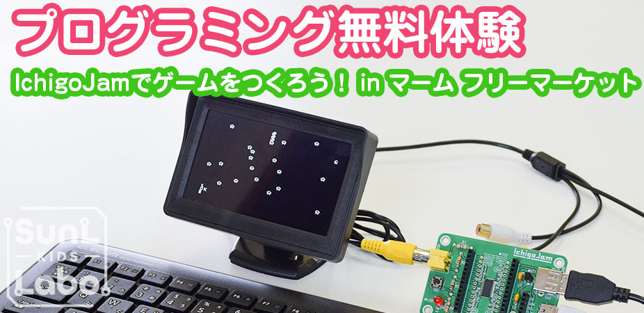 4/6(土)、松阪ショッピングセンターマームで開催されるフリーマーケットに、IchigoJamのプログラミング体験ブースを出店いたします!