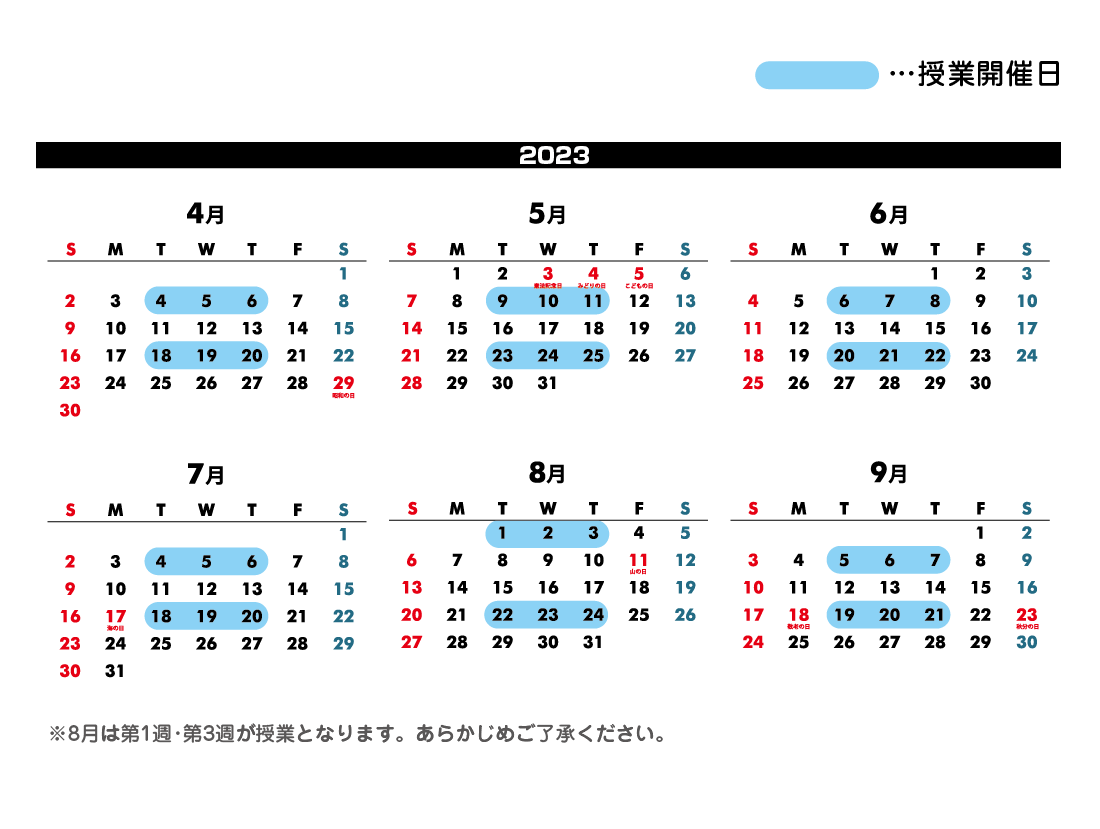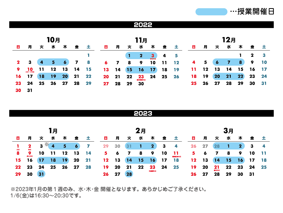 各週、曜日の変更は事前連絡の必要はございません。都合の良い曜日・時間にお越しください。